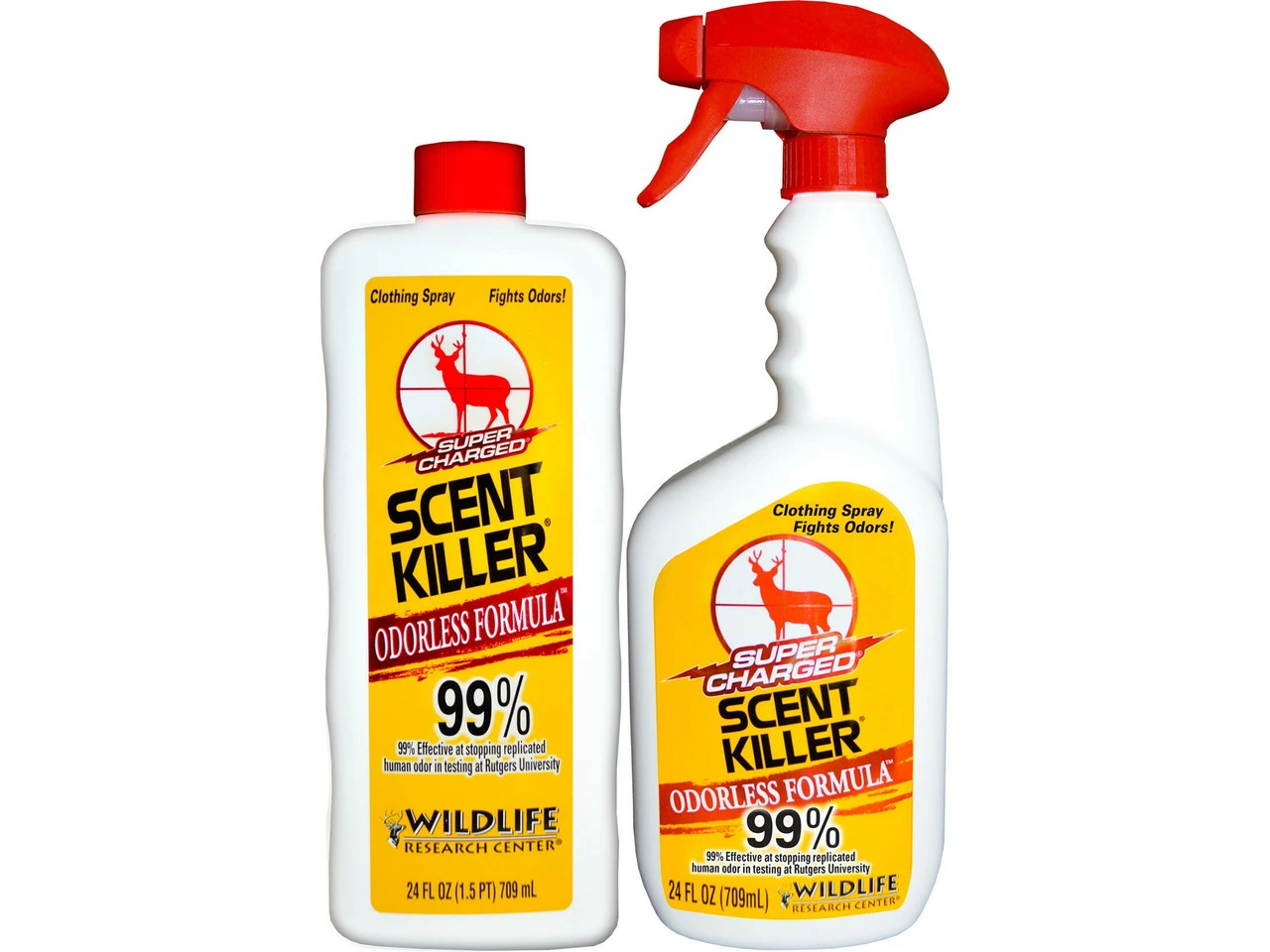 The Wildlife Research Center Scent Killer Combo includes a 24 oz spray bottle and a 24 oz bottle. This formula eliminates human odor and a heavy application of this spray can keep working for days.